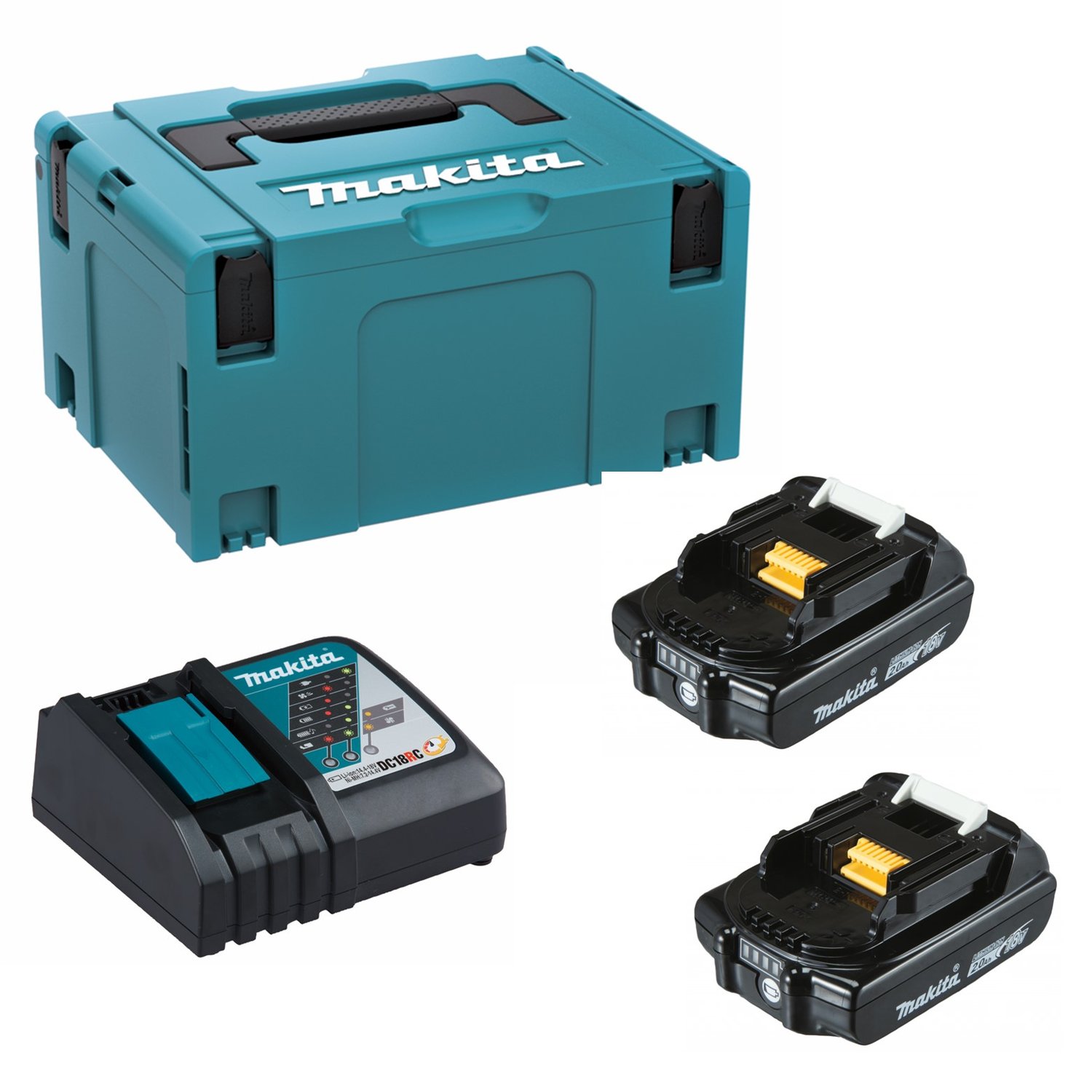 2 baterias 18V 2.0Ah, carregador rápido e maleta MAK-PAC