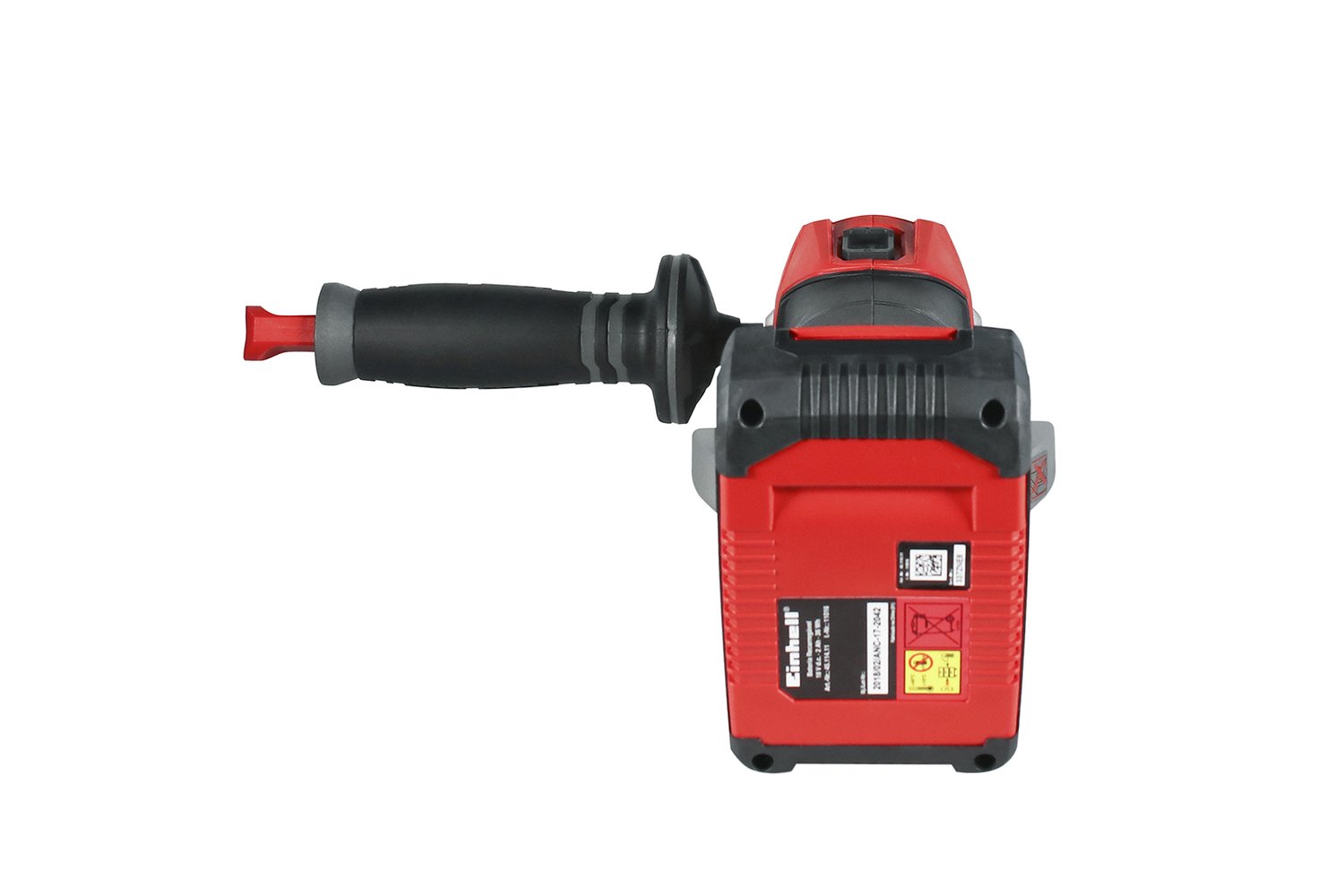 Outro diferencial desta ferramenta de corte sem fio é seu punho adicional com antivibração, que diminui a vibração na operação e pode ser fixado em duas posições, além de acompanhar chave de pino que fica guardada dentro do próprio punho, evitando que se perca e que seja transportada de forma prática junto com a ferramenta.
