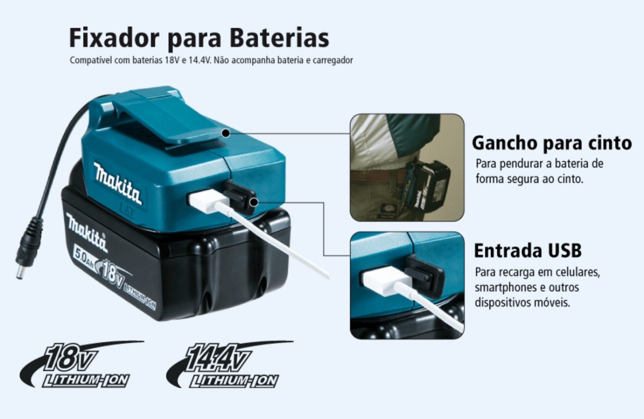 Compatível com as baterias de 18V e 14,4V