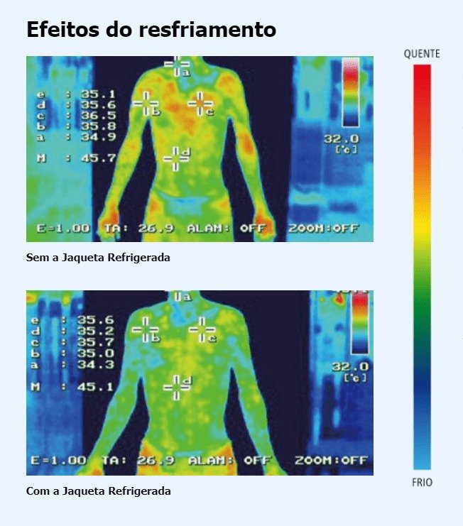 Comparação do resfriamento de temperatura do corpo durante o trabalho: