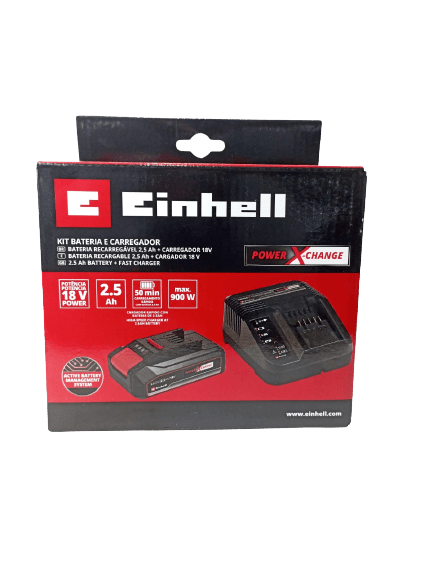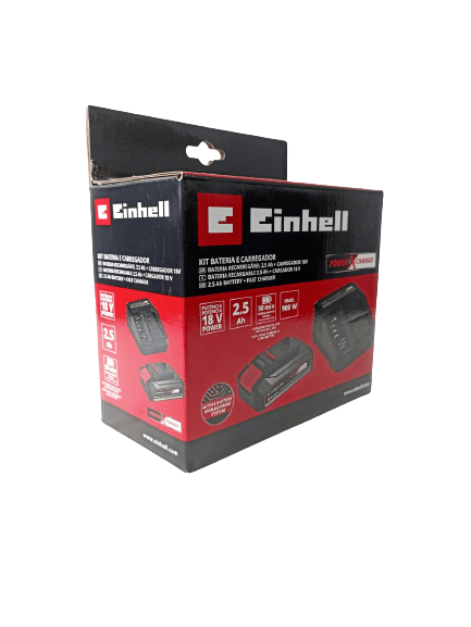 Kit para inciantes com maquinas einhell, o kit acompanha 1 bateria de 2,5 Ah X-Change com indicador de carga e 1 Carregador simples Bivolt.