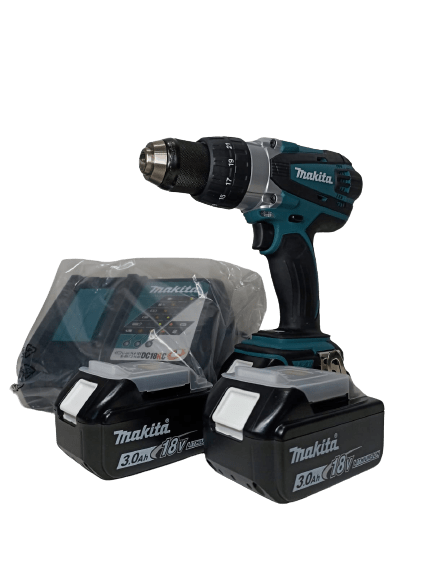 Parafusadeira e furadeira de impacto a bateria 18V DHP458RFE3 makita, maquina com tecnologia XPT resistente à água e poeira. Possui freio instantâneo, 2 velocidades mecânicas, valocidade variável, rotação reversível, mandril de apero rápido e 21 níveis de torque.