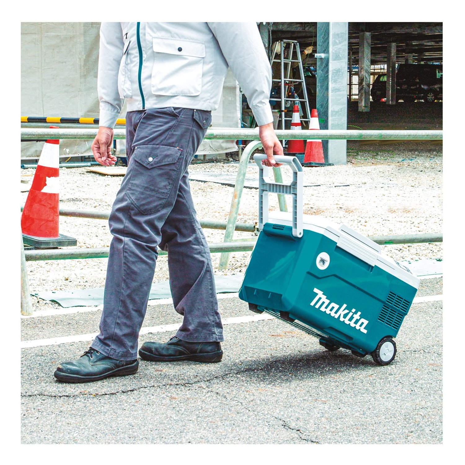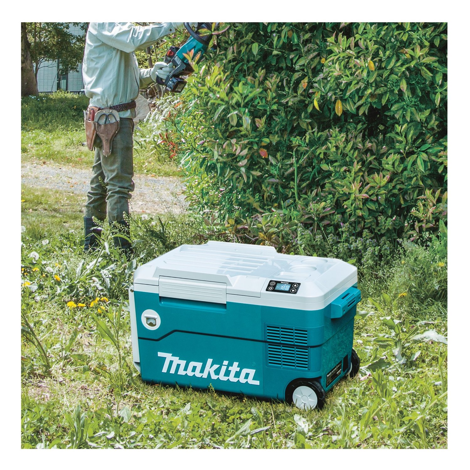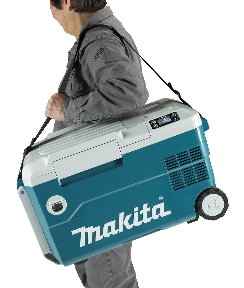 Refrigerador e aquecedor a bateria 18V makita. O refrigerador a bateria funciona com o uso de baterias 18V, também vem com alimentação para ser ligado dentro do carro no acedor de cigarro 12v e 24v e também vem com fonte para ser ligado na luz elétrica. O refrigerador e aquecedor é versátil com bastante espaço para resfriar ou aquecer a sua comida e bebida, conta com função de resfriamente eficiente e existem 5 predefinições internar. Sua configuração de temperatura de resfriamente entre -18ºC e 10ºC, bom como função de aquecimento de 55/60ºC, para qualquer lugar que você for seja na praia, no parque, no trabalho e no camping o DCW10 é obrigatório para a sua próxima aventura. Dados Técnicos: Capacidade: 20 L Graduação para refrigeração: -18 / -10 / 0 / 5 / 10°C Graduação para aquecimento: 55 / 60°C Compatível com 3 tipos de alimentação: - Baterias 18V LXT - Cabo para acendedor de cigarro (12V/24V CC) - Cabo energia elétrica Resistência a água IPX4 Tempo de execução: até 17 horas com 2 bateias de 6,0 Ah-BL1860B (quando definido a 5°C . Pode haver variação da autonomia dependendo da temperatura externa e abertura da tampa do refrigerador). Peso líquido: 13 kg somente refrigerador / 14,3 kg com 01 bateria de 6,0 Ah (BL1860B) Especificações: Capacidade: 20L Níveis de refrigeração: -18°C Níveis de aquecimento: 55°C e 60°C Peso: 14.3kg Bateria: 18V (Não inclusa) Itens Que Acompanham: Cinto de ombro, Adaptador CA, Cabo 12V Abridor de garrafa *Não acompanha baterias e carregador* Tecnologias: Segmentos: Utilidades / Aplicações: Outros / *Marca: Makita *Modelo: DCW180Z *Garantia: 12 meses *Imagens meramente ilustrativas *As informações são de total Responsabilidade/Fornecidas pelo fabricante